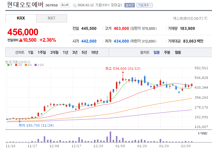 안녕하세요, 주식하는 쿼카입니다! 🐾 오늘은 현대차그룹의 소프트웨어 심장, **현대오토에버(307950)**를 분석합니다. 2026년 2월 12일 종가 기준, 뜨거운 감자로 떠오른 이 종목의 매력을 파헤쳐 보시죠.